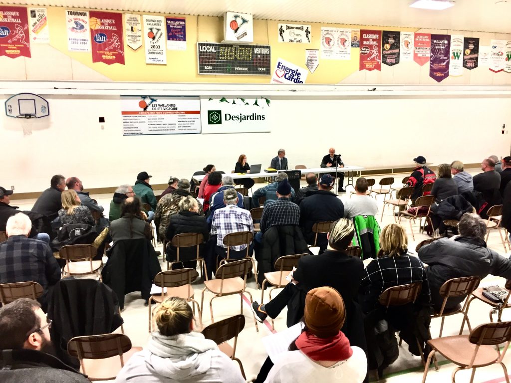 Les producteurs agricoles et les propriétaires de boisés ont réclamé nombreux, ce soir, au conseil municipal de Sainte-Victoire-de-Sorel qu’il refasse ses devoirs à l’égard de la taxation pour 2019. Le nouveau rôle d’évaluation implique une hausse si vertigineuse du prix des terres – 120 % en moyenne – qu’ils estiment le temps venu pour le conseil de décréter deux taux de taxes différents: un pour le résidentiel et un pour l’agricole, ce que la loi permet. Le président de l’UPA, Sylvain Joyal, est venu dire qu’il épousait lui-même cette idée, une solution intérimaire a-t-il insisté dans l’attente d’une révision complète du système de taxation. Voici un intervenant au micro: