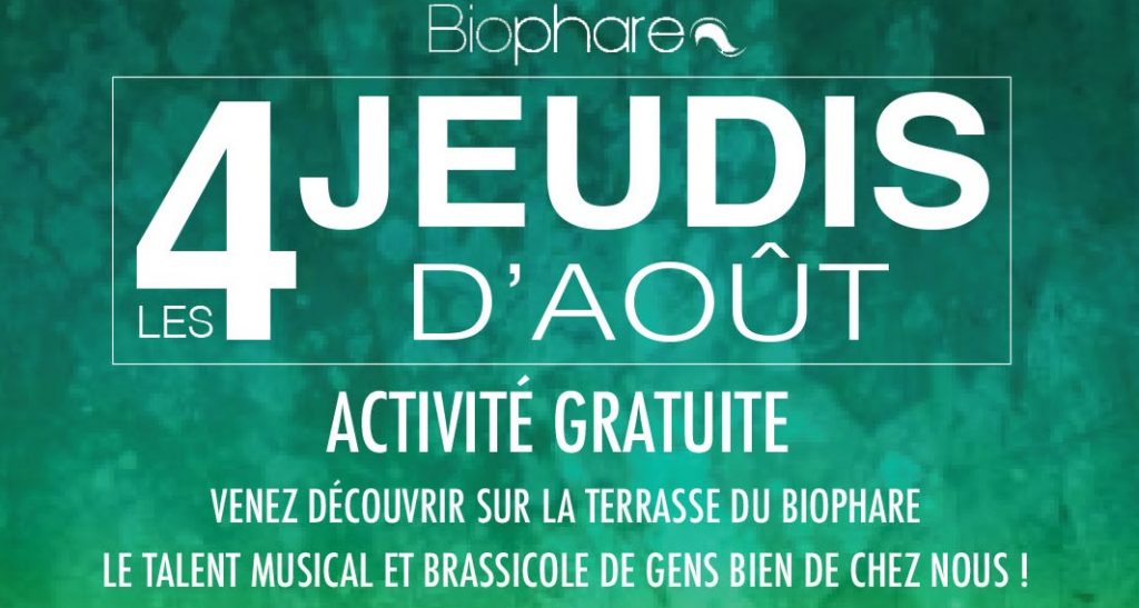 Le Biophare présentera, pour une troisième année consécutive, des spectacles musicaux gratuits. La formule de 5 à 7 a été retenue pour la saison 2016 et le Biophare invite le public tous les jeudis du mois d’août.