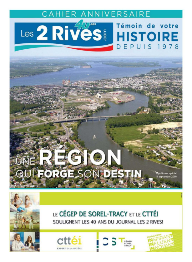 Le journal Les 2 Rives célèbre aujourd’hui son 40e anniversaire et publie pour l’occasion une édition spéciale pour souligner les 40 ans d’histoire et d’union avec la communauté de la grande région de Sorel-Tracy, incluant Contrecœur et Saint-Antoine-sur-Richelieu.