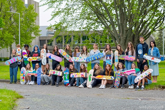 Les 62 finissants du profil arts plastiques de l’École secondaire Fernand-Lefebvre ont transformé des planches à roulettes usagées en démarche artistique dans le cadre du projet Re Deck Art de l’organisme Skateboards pour l’espoir. Leurs planches ainsi que celles des artistes Martin Cournoyer (TradeMart), Frédéric Joyal (Joy), Laurianne Choquette et Make Noize, qui se sont joints au projet, feront l’objet d’une exposition dont le vernissage ouvert à tous aura lieu le 7 juin de 17h à 19h à la salle George-Codling du Marché des arts Desjardins. L’exposition se poursuivra jusqu’au 13 juin.
