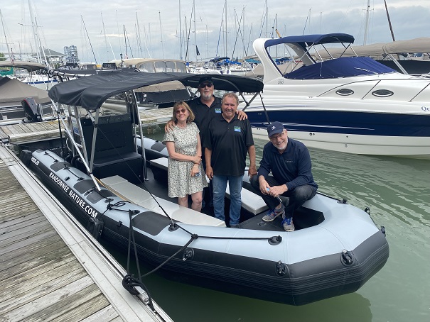 Le Biophare a présenté à la presse, ce matin, sa toute nouvelle embarcation Randonnée nature à bord de laquelle elle offrira ses excursions dans l’archipel du lac Saint-Pierre. Ce bateau pneumatique à coque en aluminium construit par AIRSOLID de Varennes offrira un plus grand confort aux passagers, et ce, de manière très sécuritaire. Il permettra d’aller dans de plus petits chenaux afin que les passagers soient en contact plus étroit avec ce milieu naturel unique. Durant cette croisière d’une durée de trois heures, les passagers seront émerveillés par la beauté de magnifiques paysages. Ils découvriront la flore et la faune abondantes des impressionnants herbiers aquatiques, marais et marécages. En plus de présenter ces milieux naturels uniques, les capitaines-guides expérimentés, Yves Marchand et Michel Frappier, communiqueront de manière pertinente et colorée les nombreuses histoires et légendes liées à la vie dans les îles de Sorel. Cette année, l’artiste JiCi Lauzon se joint à l’équipe pour piloter et animer les excursions nautiques Randonnée nature. Ce curieux de nature et grand défenseur des causes environnementales apportera sa touche bien personnelle comme capitaine-guide. Anne-Marie Dulude du Biophare :