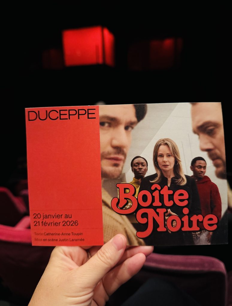 Finalement, Boîte noire est une pièce actuelle, marquante et surtout percutante, où l’écriture brillante de Catherine-Anne Toupin et le jeu des comédiens nous forcent à regarder notre réalité et notre avenir en pleine face. Même en ce moment, alors que je vous écris ces lignes, je repense à la pièce et à tout ce que l’IA pourra faire dans plusieurs années, pas si lointaines. On est loin de l’invention de la radio, de la télévision, du CD, d’Internet ou de Facebook… On commence à influencer de façon considérable la vie des gens avec les nouvelles technologies.