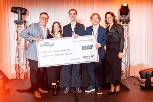 Une équipe du programme Techniques de comptabilité et de gestion du Cégep de Sorel-Tracy est fière de revenir de Berthierville avec une deuxième place dans la catégorie Marketing à l’occasion de la Coupe Paillé. Le trio composé de Sandryne Bélanger, Jérémy Dionne et Michael Robillard a ainsi pu mettre la main sur la bourse de 3000 $ grâce à ses solutions marketing adaptées au client. Ce sont 15 équipes de 15 cégeps différents qui s’affrontaient lors d’une résolution de cas en lien avec l’achat du Club de Golf de Berthier par le Groupe Paillé. Il s’agit d’un deuxième podium en deux ans pour Sandryne et Michael qui avaient remporté une deuxième place en 2022 lors de la compétition académique Place à la relève en gestion.