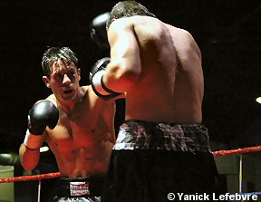 C’est sans trop de surprises que la victoire est allée à l’expérimenté Dean Mayrand, qui livrait son 15e combat hier soir (10-5) face à un Derek Parker qui lui, livrait son 4e (1-4). On connaît la réputation du jeune Parker et son désir de vaincre, mais il a dû contenir les attaques de cette machine qu’est Dean Mayrand, dans le seul combat qui s’est rendu à terme, c’est à dire, 3 rondes, chez les LNAH. Mayrand, qui était entraîné par Jamie Leinhos et Brian Rasmussen, mentionnait après le combat que techniquement, il n’est pas complètement satisfait de son combat. « J’ai manqué de patience à quelques occasions. Je dois attendre un peu plus mes opportunités ! » …Eh ben !