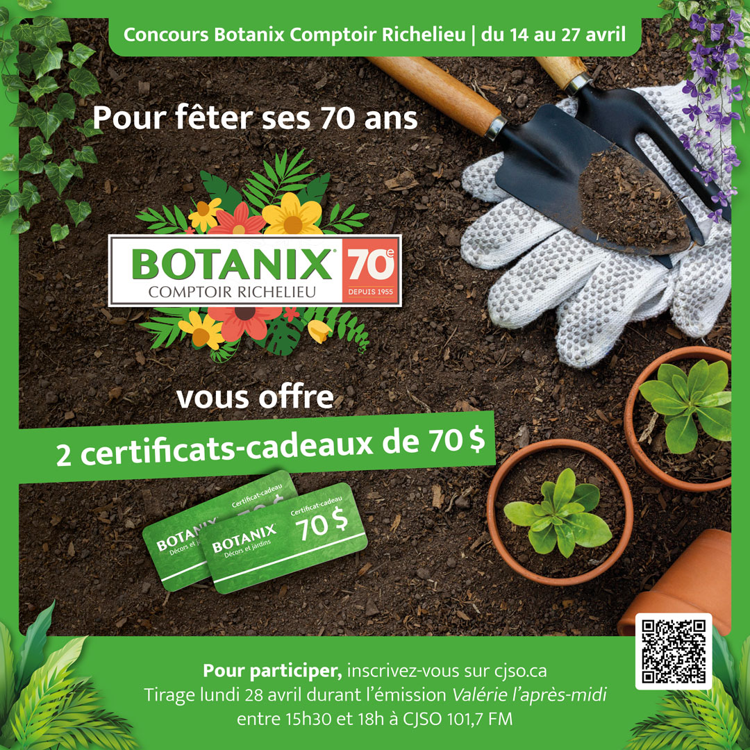 Pour fêter ses 70 ans, Botanix Comptoir Richelieu vous offre 2 certificats-cadeaux de 70$ !