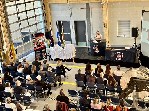 La Ville de Contrecœur a procédé, lundi, à l’inauguration officielle de sa toute nouvelle caserne de sécurité incendie, située au 4860, rue des Ormes. Ce projet d’envergure, amorcé il y a plus de dix ans, répond à un besoin devenu incontournable : offrir aux pompiers et aux premiers répondants des installations modernes, sécuritaires et adaptées aux nouvelles réalités opérationnelles, tout en assurant une couverture optimale du territoire de Contrecœur. Sa conception a tenu compte de la croissance démographique, ainsi que du développement commercial et industriel de la ville. La caserne 10 comporte une superficie de plancher de 18 200 pieds carrés. On y trouve une salle de décontamination, un espace de rangement des équipements, des vestiaires, des dortoirs, des bureaux administratifs, une salle de formation, une cuisine ainsi que des pièces utilitaires. La mairesse Maud Allaire :