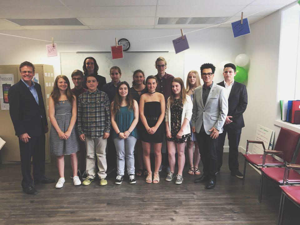 Photo : (de haut en bas de gauche à droite) Jules Labrecque, Thomas Denoncourt, Louis-Philippe Laplante, Zachary Charron, Audrey Frenette, Coralie Provost, Anthony Cloutier, Sylvain Rochon(Député de Richelieu–Parti québécois), Alexanne Duchesne, Simon Gagné, Laurence Milette, Éléonore Salvas, Audrey Milette, Serge Péloquin(maire de Sorel-Tracy)
