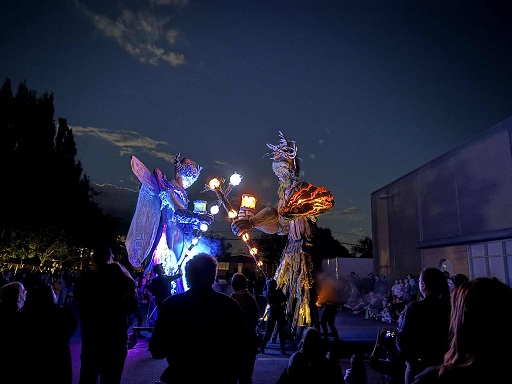Culture C, l’organisme de diffusion cultuelle de Contrecoeur, a lancé en grand, dimanche, sa saison automne 2025. Le Théâtre de la Dame de Cœur est débarqué, dans le stationnement du centre multifonctionnel, avec deux marionnettes géantes, Éria et Terrenis. Complices avec le public, les géants étincelants ont rappelé l’importance de prendre soin de notre planète, de dénouer les noeuds et de rééquilibrer les courants à la manière de l’acupuncture. La directrice générale de Culture C, Michelle Parent :