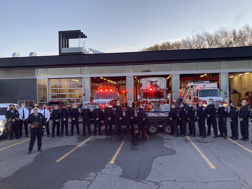 Les effectifs du Service de protection et d’intervention d’urgence de la Ville de Sorel-Tracy se sont rassemblés pour un moment de recueillement devant la caserne du boulevard Gagné, ce mercredi 20 octobre. Ils ont, par ce geste, voulu démontrer leur solidarité à l’endroit de leurs collègues montréalais en deuil de leur camarade Pierre Lacroix décédé dans l’exercice de ses fonctions. Le Service de protection et d’intervention d’urgence de la Ville de Sorel-Tracy offre ses plus sincères condoléances à la famille de monsieur Lacroix, ainsi qu’à tout le personnel de la caserne 64 – groupe 3 du Service de sécurité incendie de la Ville de Montréal.