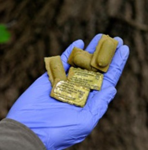 L’appât vaccinal ressemble à un sachet de ketchup verdâtre ou à un ravioli vert kaki, et il dégage une odeur sucrée attirante pour les espèces visées. En raison de sa couleur, il se confond avec l’environnement et il est difficile à repérer pour l’humain. L’appât vaccinal ne contient pas de virus actif et ne peut pas transmettre la rage.