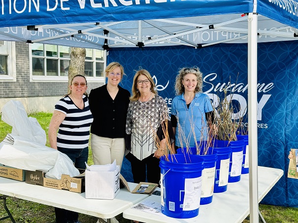 Le vendredi 19 mai dernier, à l’occasion du Mois de l’arbre et des forêts, la députée de Verchères, ministre de la Famille et ministre responsable de la Montérégie, Suzanne Roy, a distribué 300 pousses d’arbres aux élèves, aux parents et aux personnels de l’école primaire Mère-Marie-Rose de Contrecoeur.