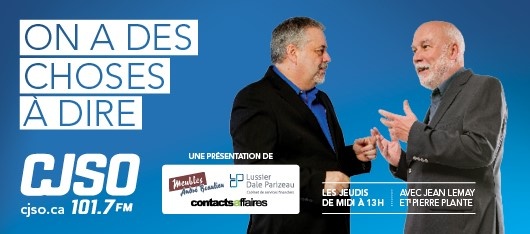 Ce jeudi à On a des choses à dire, on rejoint André Champagne à la pesée officielle du 4e Gala de boxe présenté demain au Colisée Cardin, on parle avec Dominic Arpin qui sera nommé Ambassadeur d’ici 2016 par l’Orienthèque la semaine prochaine et on salue le prix Ovation municipal reçu par le Parc des Grèves avec M. Yves Beaulieu.