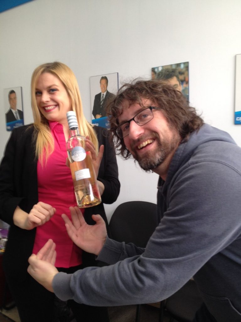 La belle Geneviève nous fait découvrir un délicieux rosé du sud de la France,le »Gris blanc » du vigneron Gérard Bertrand…..