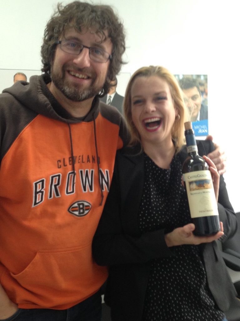 La belle Geneviève nous fait découvrir un délicieux vin de Toscane »Castelgiocondo Brunell0-di-Montalcino 2012 ».Louis-Philippe et moi sommes sous le charme…..