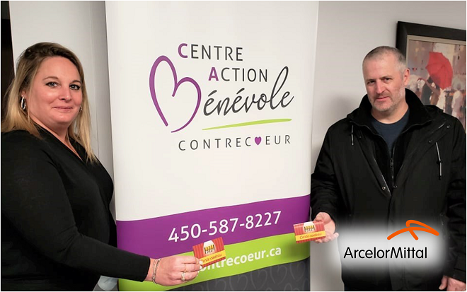 Le Centre d’action bénévole de Contrecœur salue les employés et les cadres de l’usine de Contrecoeur-Ouest d’ArcelorMittal pour leur achat de cartes cadeaux d’une valeur de 2 000$.