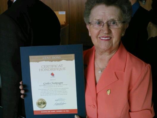 Des salutations ont été faites aux personnes ayant atteint les plateaux de tranches de 25 dons, allant jusqu’à 850 dons, par une dame de la Rive-sud de Montréal.