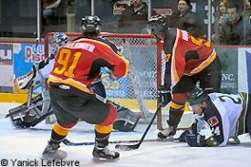 L’intensité des hommes à Bobby Dollas leur a permis d’inscrire le premier but de la partie. Hugo Bélanger a fait mouche pour la 19ème fois de l’année, lorsqu’il a projeté le tir de Sénèque Hyacinthe dans le coin gauche de la lucarne, pendant que Jean-François Boutin purgeait une pénalité.