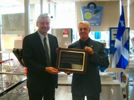 Sorel-Tracy – À l’occasion d’une cérémonie de reconnaissance, le préfet de la MRC du Bas-Richelieu, M. Olivar Gravel, a remis avec enthousiasme la première distinction honorifique régionale « ICI, on récupère! » à M. Sylvio Bouchard, propriétaire du MÉTRO SOREL, pour sa gestion responsable des matières résiduelles de son commerce. Basée sur la Politique de reconnaissance régionale « ICI, on récupère! » prévue au Plan de gestion des matières résiduelles (PGMR) de la MRC du Bas-Richelieu, cette attestation de performance souligne de façon officielle les efforts de réduction de déchets des commerces et institutions du Bas-Richelieu qui récupèrent plus de 80 % de leurs matières résiduelles générées.