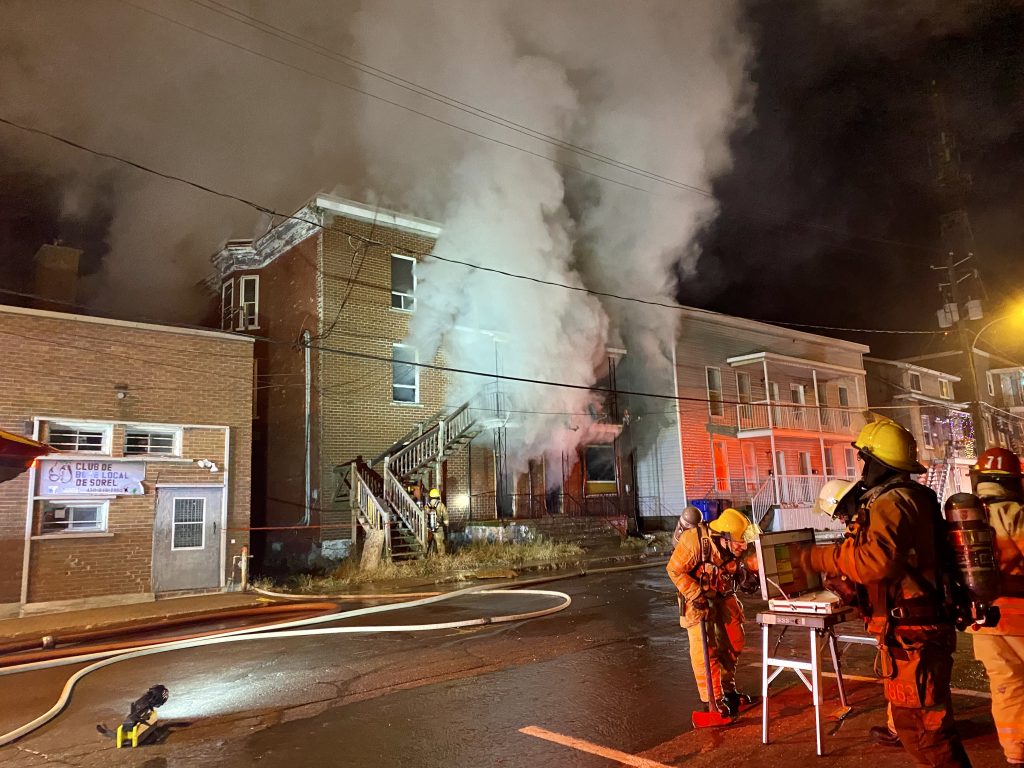 Les pompiers du Service de protection et d’intervention d’urgence de la Ville de Sorel-Tracy ont combattu, dès 4h45, jeudi matin, un incendie dans un immeuble à logements désaffecté du 65, rue de la Reine, à Sorel-Tracy. Il aura fallu attendre 14h03 pour que cet incendie soit déclaré formellement maîtrisé. Les sapeurs de municipalités voisines sont venus en renfort. Un pompier a été très légèrement blessé. Il a reçu son congé de l’hôpital. Le feu ne s’est pas propagé aux bâtiments voisins bien que le revêtement extérieur de l’un de ceux-ci ait été endommagé. On a craint que des squatteurs puissent se trouver à l’intérieur de l’immeuble en flammes. Cette crainte ne s’est heureusement pas avérée. La cause de l’incendie demeure inconnue. Une pelle mécanique achève de raser le bâtiment.