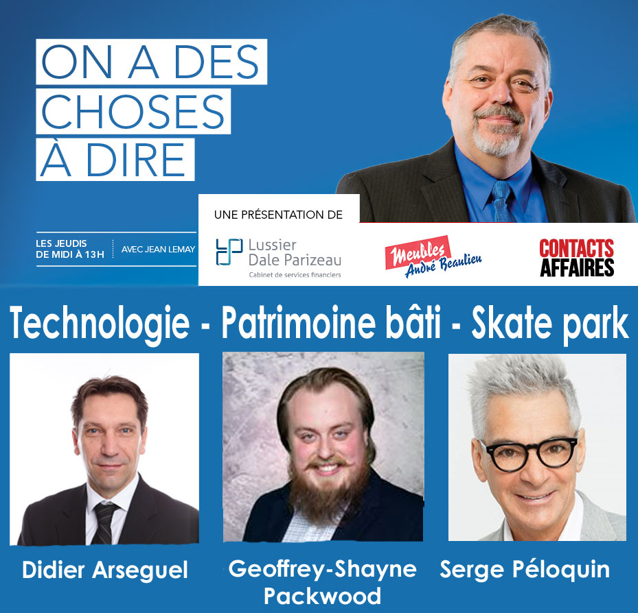 Ce jeudi on parle d’impression 3D métallique avec le vice-président du Centre technologique de RTIT-RTFT Didier Arseguel, nous traitons de protection du patrimoine bâti avec le directeur général de la Société historique Pierre-De Saurel Geoffrey-Shayne Packwood et du futur Skate park avec le maire de Sorel-Tracy Serge Péloquin