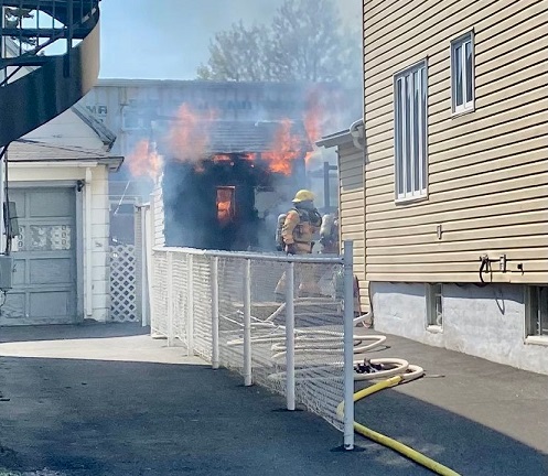 Les pompiers du Service de protection et d’intervention d’urgence de la Ville de Sorel-Tracy sont intervenus, à Saint-Joseph-de-Sorel, ce jeudi après-midi, vers 15h. À leur arrivée, le feu faisait rage dans une remise et sur une terrasse derrière un duplex de la rue Decelles. Le travail des sapeurs a permis d’éviter que l’incendie ne se propage sévèrement au duplex et aux immeubles voisins. Le chef aux opérations Luc Poirier: