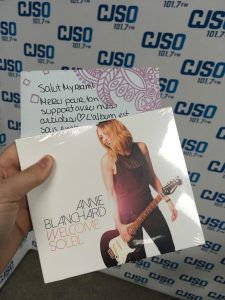 Chaque fois que je reçois du courrier à CJSO, je suis comme une enfant! J’ai toujours hâte d’ouvrir l’enveloppe. Cette fois-ci, j’ai eu la surprise de recevoir le nouvel album d’Annie Blanchard, Welcome soleil.