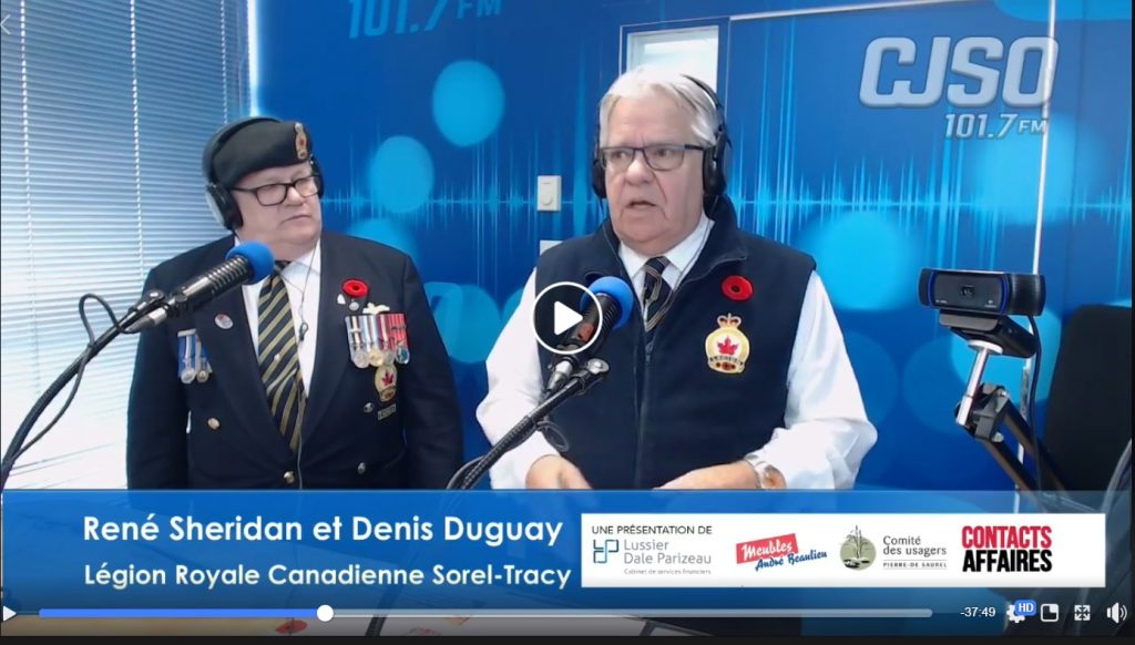 Ce jeudi à On a des choses à dire on parle des activités spéciales entourant le jour du souvenir à Sorel-Tracy avec René Sheridan de la Légion royale canadienne et l’adjudant à la retraite et président de La Légion royale canadienne de Sorel-Tracy, Denis Duguay. L’historien Hubert Vallée nous rappelle la chute du mur de Berlin qui célèbre ses trente ans cette semaine et Mme Louise Plante de la Maison Le Passeur souligne la semaine québécoise pour la santé et le bien-être des hommes qui a lieu du 11 au 19 novembre prochain et qui culminera par la 6e Journée internationale des hommes.