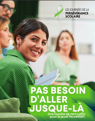 Le Centre de services scolaire de Sorel-Tracy invite l’ensemble de sa communauté éducative à prendre part aux nombreuses activités proposées tout au long de la semaine. Parmi celles-ci, le traditionnel jeudi perséVERT, le 19 février, constitue un moment fort de mobilisation. Le personnel, les élèves et les partenaires sont invités à porter une touche de vert afin d’afficher concrètement leur soutien à la persévérance scolaire.