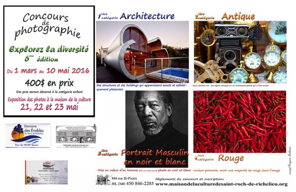 La 6e édition du concours de photographie, Explorez la diversité, de la Maison de la Culture de Saint-Roch de Richelieu, est lancée.