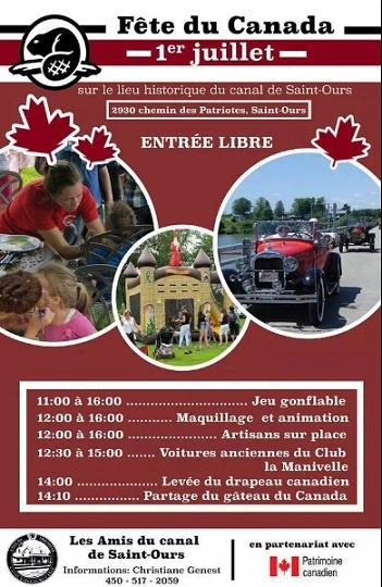 Plusieurs activités seront organisées sur le lieu historique du canal de Saint-Ours demain 1er juillet à l’occasion de la fête du Canada.