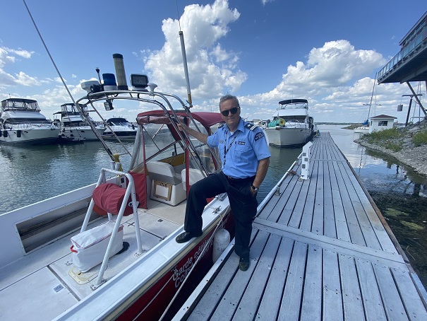 La Garde Cotière Auxiliaire remerciait, ce midi, à la Marina Saurel, ses commanditaires et ses bénévoles qui consacrent une partie de leur été à parcourir les cours d’eau pour prêter main-forte aux plaisanciers. Ils ont, à leur crédit, depuis le début de la saison, plusieurs sorties et bon nombre de missions nous dit Pierre Vaillancourt, commandant de l’unité 22 basée à Sorel-Tracy.