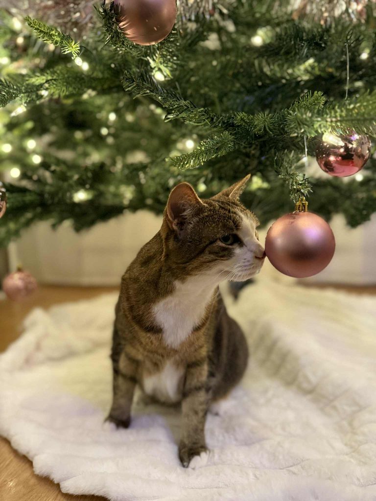 Photo: Biscuit aime bien son arbre décoré!