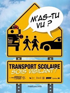 La 27e campagne de sécurité en transport scolaire M’as-tu vu?, de la Fédération des transporteurs par autobus se déroulera du 2 au 13 février prochain. Diverses actions seront menées dans toutes les régions de la province afin de rappeler aux usagers de la route, aux écoliers et à leurs parents qu’il faut être vigilant en présence d’autobus scolaires.
