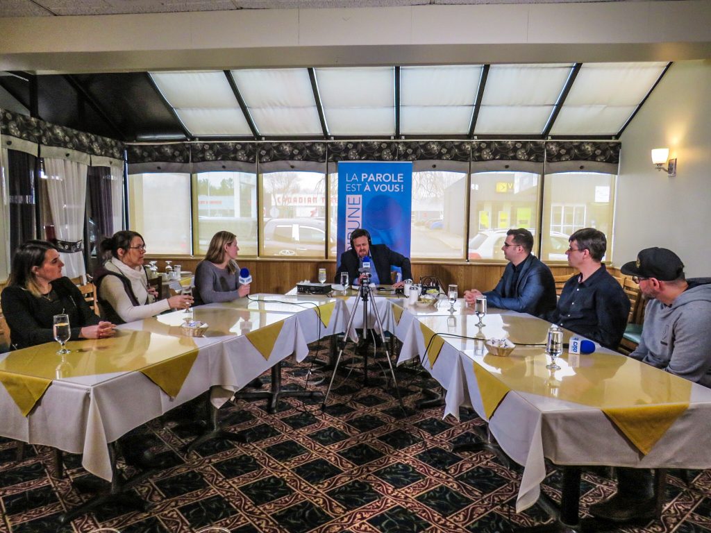En direct du restaurant La Bouff-Tifail, Sylvain Rochon recevait, ce midi, à La Tribune, les lauréates et les lauréats du Défi OSEentreprendre 2019, Mélissa Gilbert, Astrid Debeissat, Lise Douville, Pascalin Raynault, Rolland-Pierre Chalifoux et Luc Tellier et les agentes de développement qui ont accompagné leurs parcours, Lise Gauthier de la SADC et Émilie Vial du CLD.