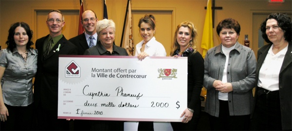 Ensuite, lundi dernier, le conseil municipal a offert une bourse de 2 000 $ à Cynthia, afin de l’encourager dans la poursuite de sa carrière, dont la dernière étape fut une 2ième place aux Championnats Canadiens en janvier dernier, où elle a obtenu son laissez-passer pour les Jeux Olympiques de Vancouver.