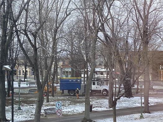 Le Service des travaux publics de la Ville de Sorel-Tracy a passé plusieurs jours, cette semaine, à réaliser des travaux d’élagage dans le carré Royal où il aura fallu se résoudre à abattre deux frênes malades. Ce service compte sa propre division de l’arboriculture pour laquelle oeuvrent, pendant la saison estivale, cinq horticultrices et horticulteurs, et deux élagueurs. Le directeur des communications de la Ville, Dominic Brassard :