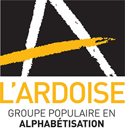 L’Ardoise, groupe populaire en alphabétisation offre des ateliers d’alphabétisation populaire et d’autres activités éducatives afin de briser l’isolement des personnes peu alphabétisées, d’accroître leur autonomie et de les aider dans la vie quotidienne face à l’écrit et aux nouvelles technologies et fait connaître à la population en général la problématique de l’analphabétisme ainsi que le travail effectué par l’organisme.