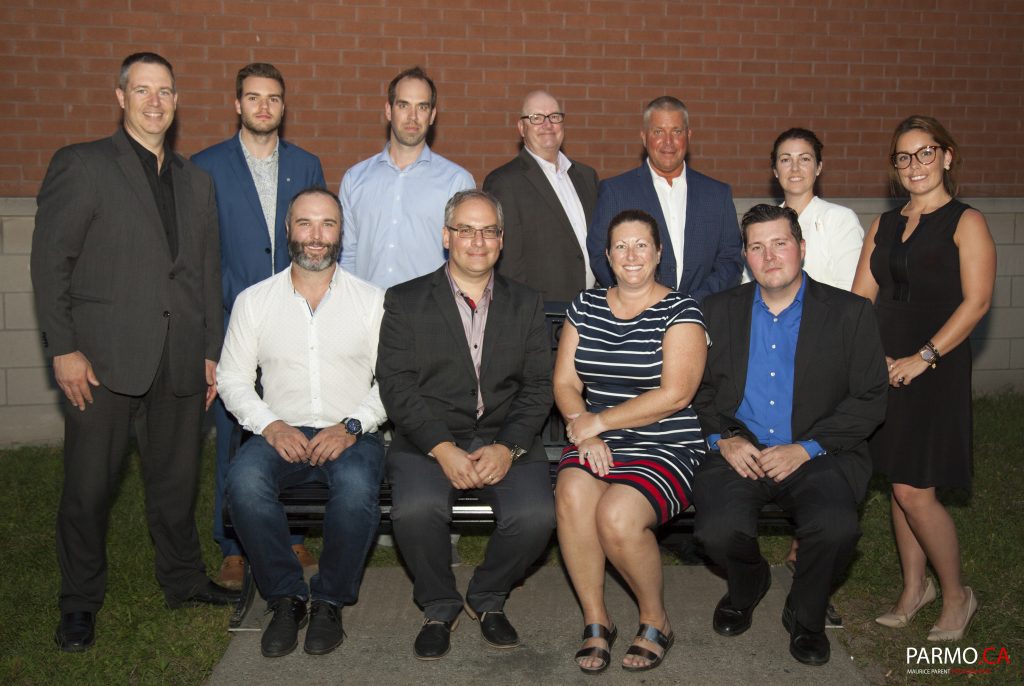Légende :De gauche à droite : Patrick Fortin Cégep de Sorel-Tracy, Thomas Cantin Desjardins entreprises, Philippe Bernard Kartouche Plus, Jacques Thivierge Ville de Sorel-Tracy, Christian Deguise Pleximax, Karine Villiard Charlotine et Cie, Andréanne Gagnon Montérégiequalifiée.com, Jean-Philippe Boulet (secrétaire) restaurant le Fougasse, Laurent Cournoyer (président) Cournoyer communication marketing et CJSO 101,7 FM, Geneviève Morin (vice-présidente) Clinique Genevieve Morin et Patrice Besson (trésorier) Rio Tinto Fer et Titane.