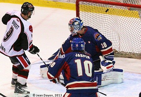 Après avoir laissé les visiteurs prendre les devants 2-0 durant les dix premières minutes de jeu, les sorelois se sont réveillés et ont marqué trois buts en deuxième période, ceux de Perricone à 5 contre 5 puis, ceux de Nurislamov et Bertrand, à 5 contre 4.