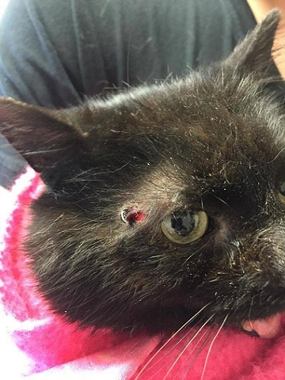 Karine Marcotte, directrice générale du Centre animalier, raconte qu’un chat errant a été récupéré par le Centre à la demande d’un citoyen et c’est après son admission qu’ils ont aperçu qu’il avait été tiré avec une carabine à plomb. La blessure était très près de l’œil et ils ont donc retiré le plomb de la plaie.