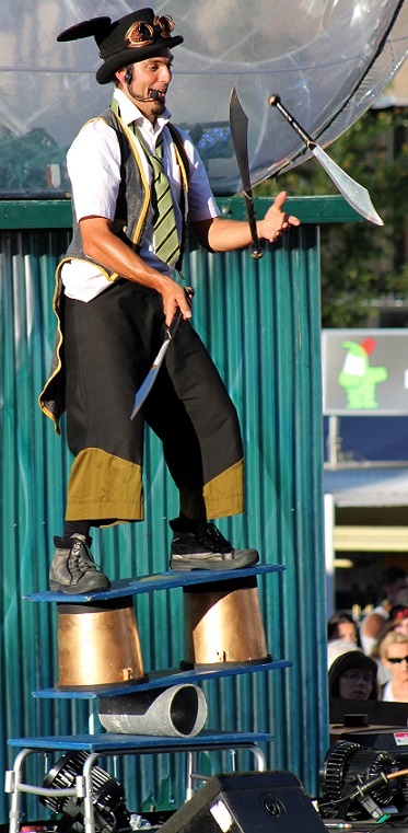 Le Cirque insolite du Prof Wooopsss en prestation lors des dimanches Fabul’Art