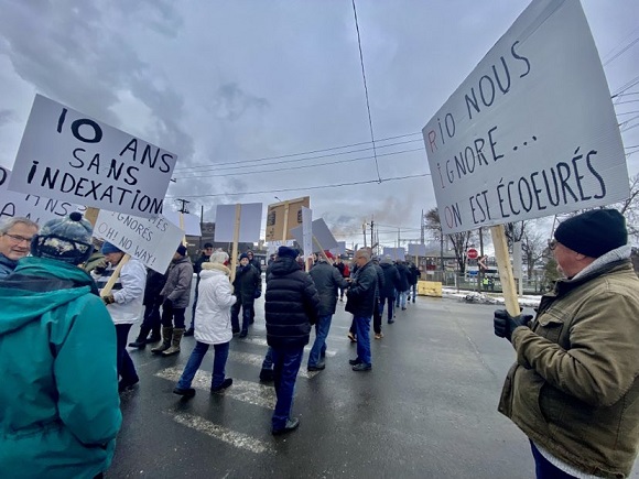 Les cadres retraités de Fer et Titane n’abandonnent pas la lutte pour l’indexation de leurs rentes, non-indexées depuis 2011. Ils ont de nouveau manifesté devant les installations de l’entreprise, route Marie-Victorin, à Sorel-Tracy, ce matin, pour se plaindre que le dossier n’avance pas malgré les rencontres qu’ils ont pu avoir avec l’employeur à ce sujet. Christian Turgeon: