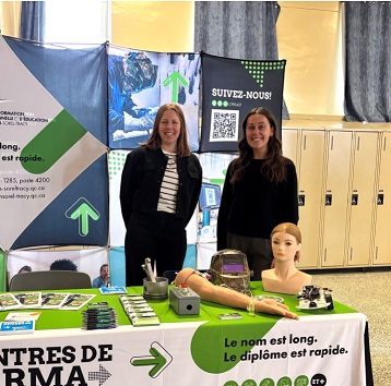 Des représentantes et représentants des Centres de formation professionnelle et d’éducation des adultes Sorel-Tracy ont participé, ces derniers jours, à plusieurs événements pour faire découvrir les programmes et services qu’ils offrent. Ils ont pu, au Salon Mon orientation, ma formation de Saint-Hubert, au Salon des exposants du CEA Saint-Hyacinthe-Acton et au match des Éperviers au Colisée Cardin, mettre en lumière les spécificités des centres auprès d’élèves potentiels et de leurs proches. Ces activités de promotion ont également constitué d’excellentes occasions d’inviter le public aux portes ouvertes qui se tiendront aux Centres de formation professionnelle et d’éducation des adultes de Sorel-Tracy, le 13 février prochain, de 16h à 20h.