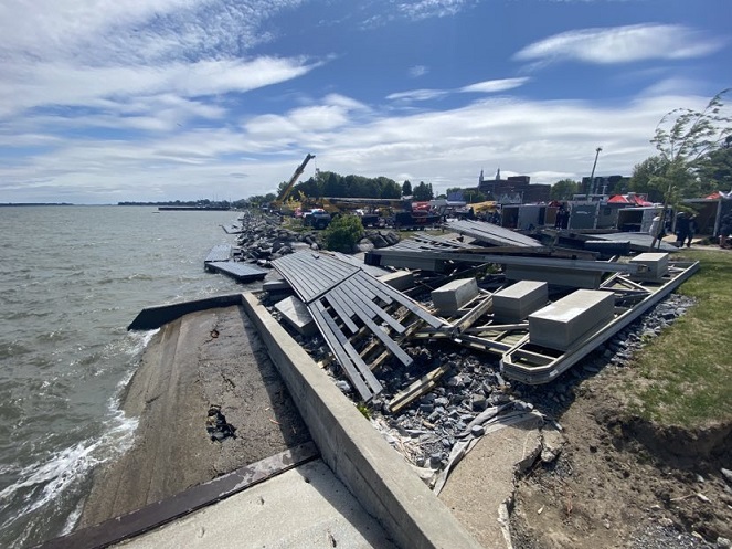 Les forts vents ont eu raison de la seconde édition des Régates internationales de Sorel-Tracy. Les compétitions d’hydroplanes qui devaient être présentées sur le fleuve à proximité du quai Catherine Legardeur ce week-end ont été annulées en raison d’importantes rafales produisant de bonnes vagues qui ont entrainé la destruction de plusieurs quais. Menée par le Groupe Gib, l’organisation qui avait travaillé assidument pour faire du rendez-vous un succès s’est inclinée devant la météo qui paraissait jusqu’à vendredi après-midi vouloir collaborer. Président du groupe, Jean-Pierre Groulx affichait dimanche de la résilience.