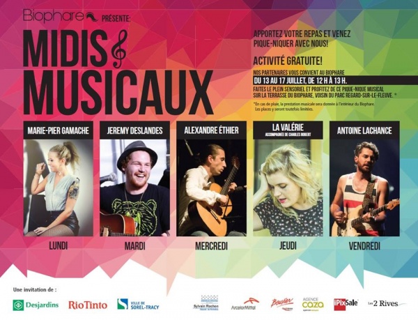 Du 13 au 17 juillet 2015, le Biophare offre la possibilité d’assister aux midis musicaux, sur leur terrasse, et ce, pour une 2e année consécutive.
