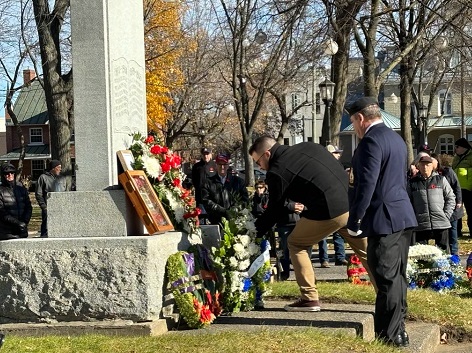 La parade du jour du Souvenir suivie de la cérémonie au pied du cénotaphe de la rue Charlotte a, dimanche matin, vu quelques dizaines de Sorelois se rappeler les sacrifices de la Première Guerre mondiale et d’autres guerres. Des fleurs et couronnes ont été déposées par des dignitaires dont le député de Bécancour-Nicolet-Saurel, Louis Plamondon, le maire de Sorel-Tracy, Patrick Péloquin, le préfet de la MRC de Pierre-De Saurel et maire de Saint-Joseph-de-Sorel, Vincent Deguise, une représentante du député Jean-Bernard Émond et le pro-maire de Sainte-Anne-de-Sorel, Mario Cournoyer. Des vétérans étaient sur place. Parmi eux, Jean-Paul Trépanier, 92 ans, qui a pris part à la guerre de Corée et Raymond Chapdelaine et Denis Duguay auxquels nous avons pu tendre le micro.
