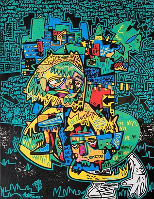 Avec L’alchimie des formes, Martin Cournoyer transforme lignes et entrelacs en un monde étrange peuplé de personnages et de créatures déjantées. Ses gribouillages primitifs au crayon à l’acrylique et à la peinture deviennent matière vivante, oscillant entre abstraction et figuration. L’exposition révèle des dessins et des tableaux à l’énergie brute où couleurs, lignes et formes s’entremêlent pour créer une composition dynamique éclatée.