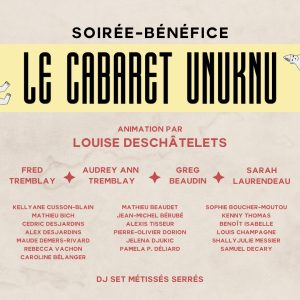 (Myriam Arpin) La compagnie de théâtre Les Créations Unuknu, cofondée par la soreloise Marie-Andrée Lemieux, Hilaire St-Laurent et Nicolas Centeno, a récemment lancé sa campagne annuelle qui sera présidée par la grande Louise Deschâtelets. Celle-ci nous parle de la soirée-bénéfice festive qui se déroulera ce jeudi 9 mai, dès 19 h, à l’Espace Transmission. Écoutez l’entrevue ici :
