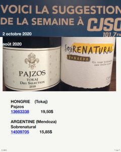 L’Univers des vins (Chronique du 2 octobre 2020)