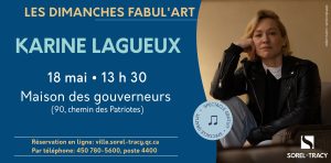 En mars dernier, Karine Lagueux nous offrait une nouvelle balade folk évoquant à la fois les espoirs d’une histoire d’amour naissante et la déception d’un retour sans réponse. Elle y raconte ces kilomètres parcourus pour tendre son cœur sur un « Tu m’aimes-tu ? », comme elle le décrivait si justement sur sa page Facebook. Avec 60 piasses aller-retour, l’artiste donne le ton à ses nouvelles chansons, qu’elle souhaite nous dévoiler au fil du temps, comme autant de cadeaux soigneusement emballés. Elle a d’ailleurs récemment présenté une seconde pièce, On reculera l’heure. Connue également pour ses apparitions à la télévision dans Le temps des Framboises et Indéfendable, entre autres, l’autrice-compositrice-interprète sera en spectacle à la Maison des gouverneurs, le 18 mai prochain, dans le cadre des Dimanches Fabul’art. Un rendez-vous gratuit et lumineux à ne pas manquer!